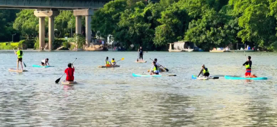 桨板运动以其亲近自然、门槛低、简单易学的特点,正成为市民休闲的新宠。不过教练也提醒大家,新手往往安全意识不足,需要掌握基本的安全知识和技巧。